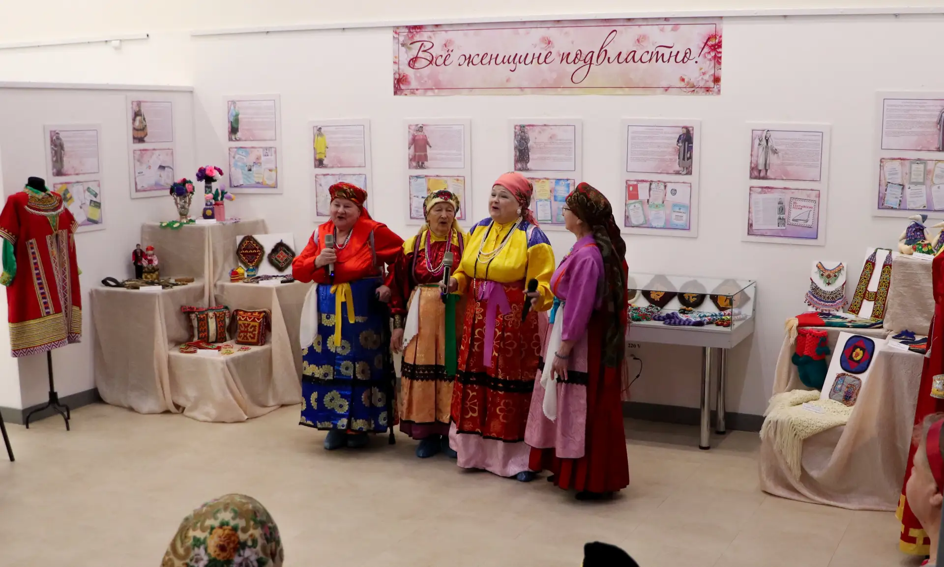 Экспозиция выставки представляет работы мастериц разных народностей: ханты, манси, зыряне, татары, калмыки, русские.